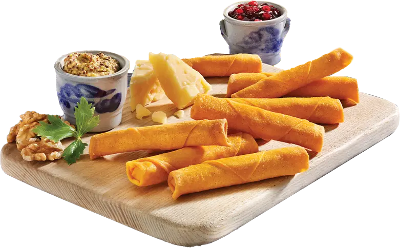 Duca Cheese Sticks are delicious cheese-filled snacks made with aged cheese, wrapped in a crispy crepe-like pastry. Creamy and full of flavour.